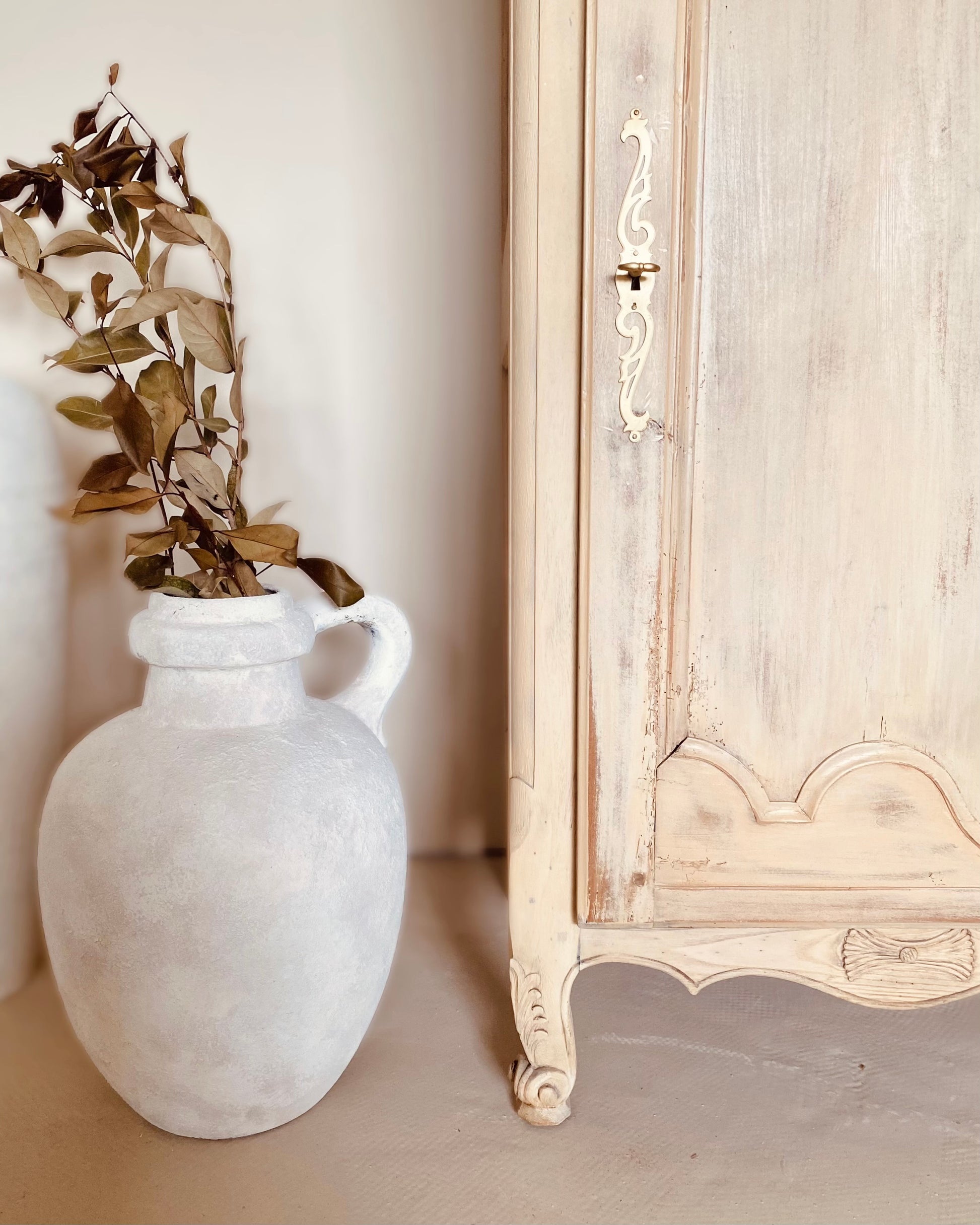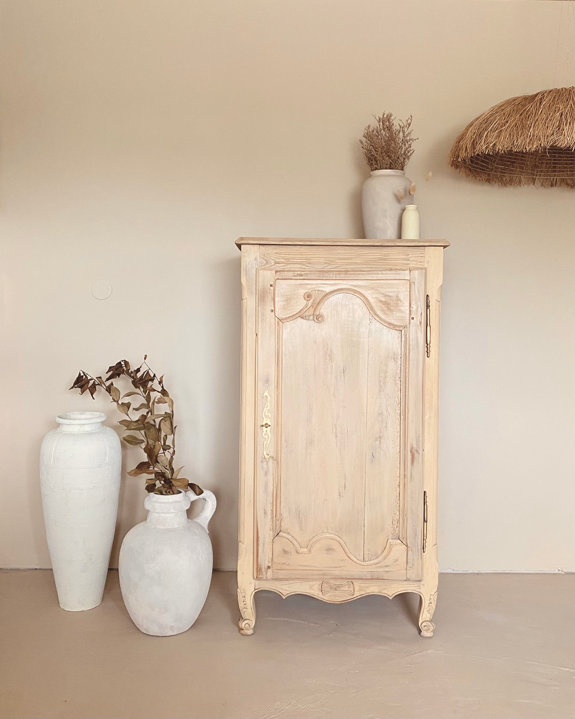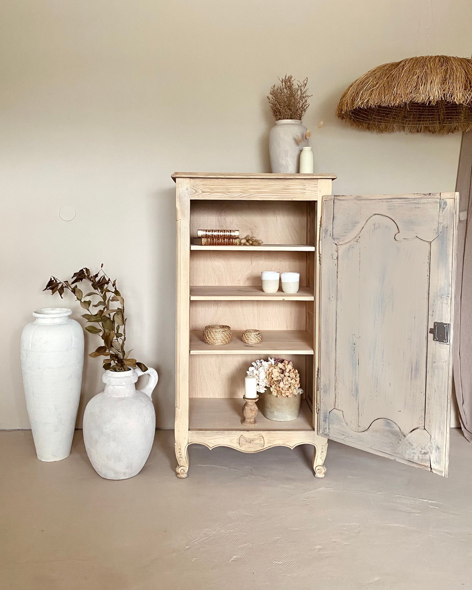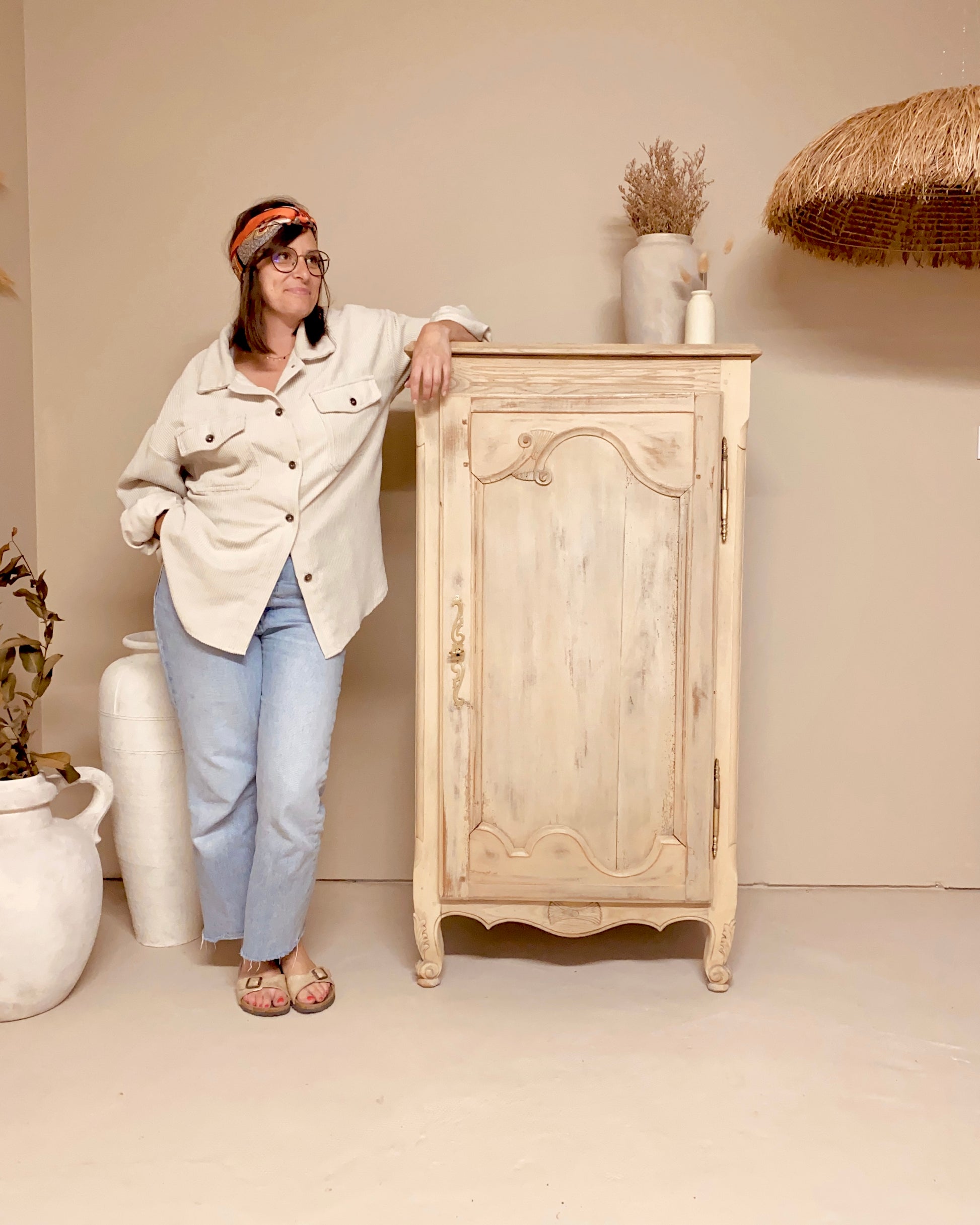 J’ai utilisé la méthode du paint whashing pour uniformiser la teinte du bois tout en gardant le veinage du chêne apparent puis j’ai légèrement patiné la porte.