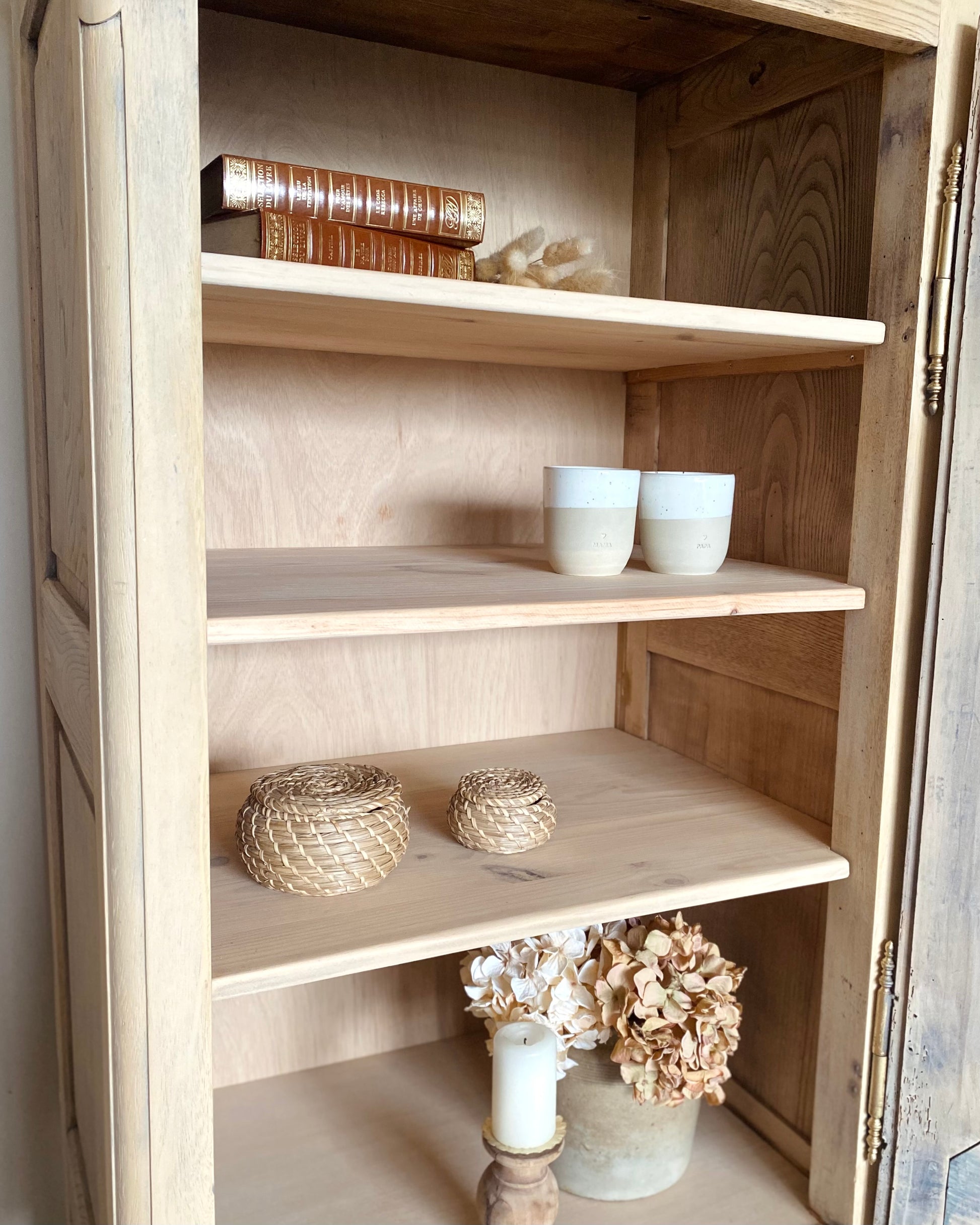 Les étagères sont protégées avec un vernis mat incolore.