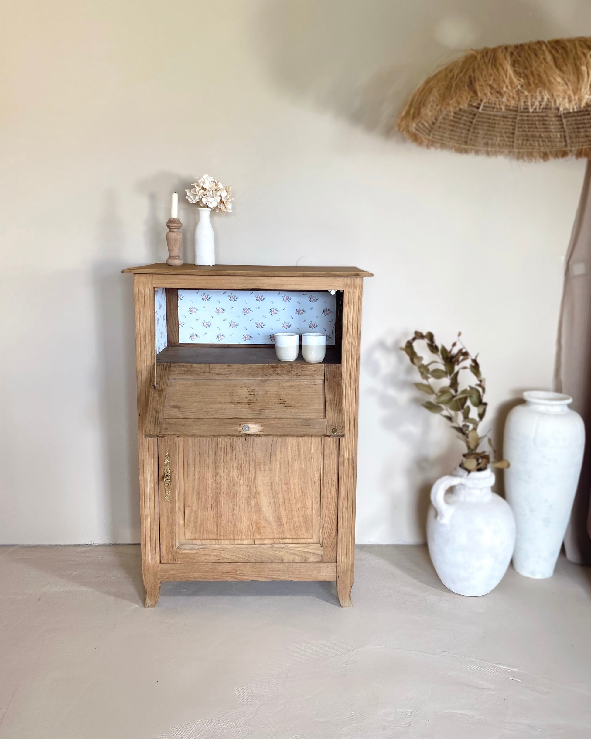 J’ai recréé une étagère en bas qui a été protégée avec un vernis mat couleur chêne.