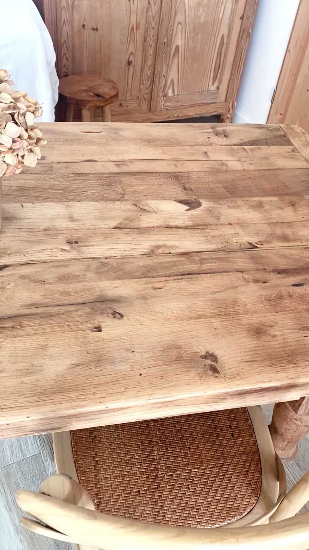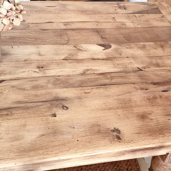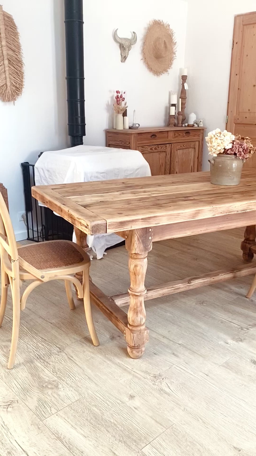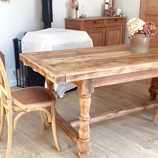 C’est une table ancienne qui a traversé le temps, elle a donc des marques qui témoignent de son vécu. Mais cela n’enlève en rien sa robustesse.